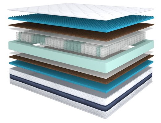 Наполнитель: Высокотехнологичная пена ElasticFoam Massage Ocean, кокосовая койра, НПБ 256 шт/кв.м., система усиления боковой поддержки, ППУ