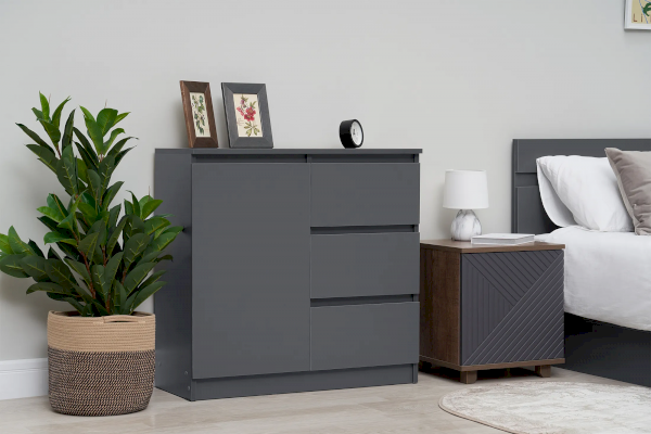 Комод с 3 ящиками и 1 дверью Челси 800 (Миф) – товар доступен к покупке в интернет-магазине dommebeli-v-tyumeni.ru. Цена – 4 828 руб. без учета доставки. Стоимость дополнительных услуг и сроки получения мебели уточняйте у менеджера. Возможен безналичный расчет, оплата по карте на сайте.