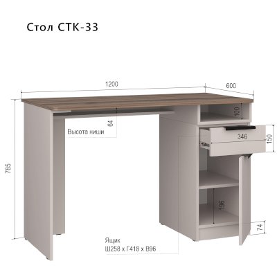 Письменный стол СТК 33 (Аквилон) – товар доступен к покупке в интернет-магазине dommebeli-v-tyumeni.ru. Цена – 10 599 руб. без учета доставки. Стоимость дополнительных услуг и сроки получения мебели уточняйте у менеджера. Возможен безналичный расчет, оплата по карте на сайте.