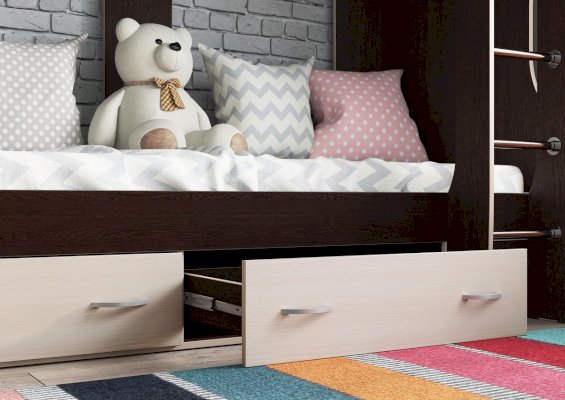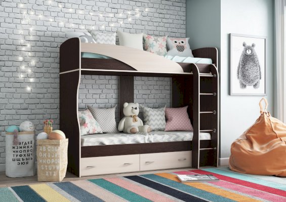 Двухярусная кровать Мийа – это самое лучшее решение для многодетной семьи. Эта удобная кровать выполнена в классическом стиле, она создаст в комнате атмосферу комфорта и обеспечит здоровый и крепкий сон ваших детей.